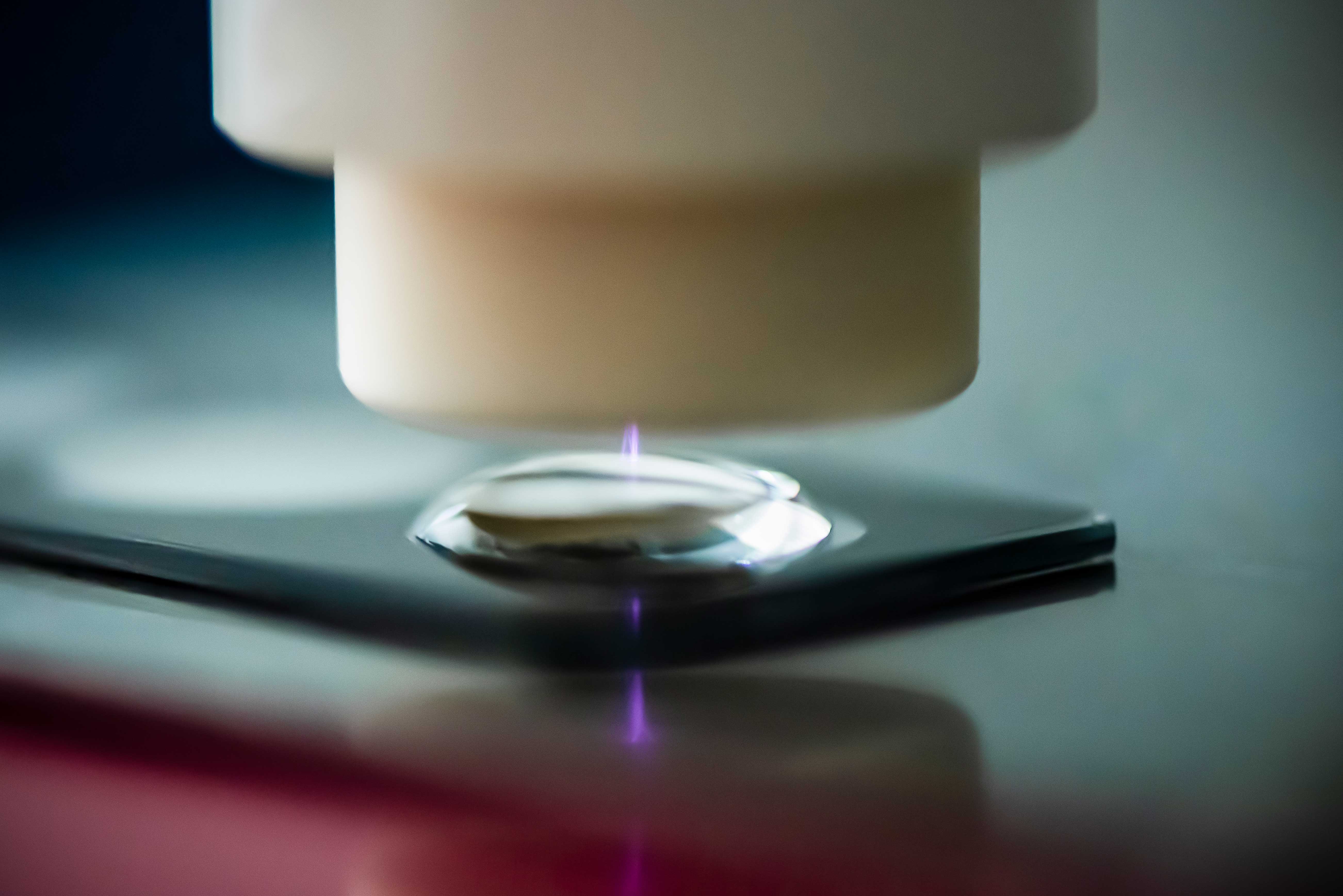 Further experiments have shown that the process works even better if the noble gas helium is used instead of air as the basis for plasma generation and if water vapour is added. “You find a lot more hydrogen peroxide in the solution, perhaps generated from plasma-generated OH radicals,” as Julia Bandow speculates. This increased the yield from about ten nanomole hydrogen peroxide per minute to 200 nanomole per minute. A further increase in hydrogen peroxide formation by 50 per cent was achieved by changing the voltage.